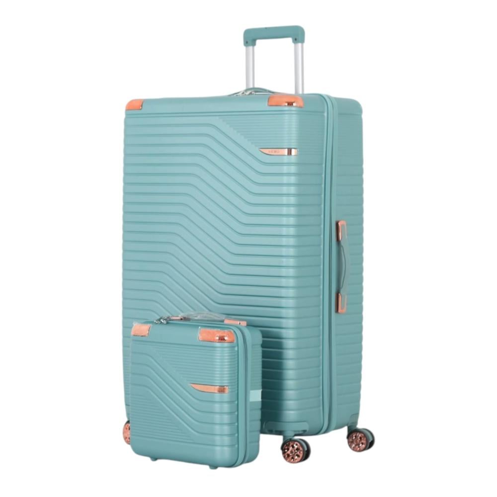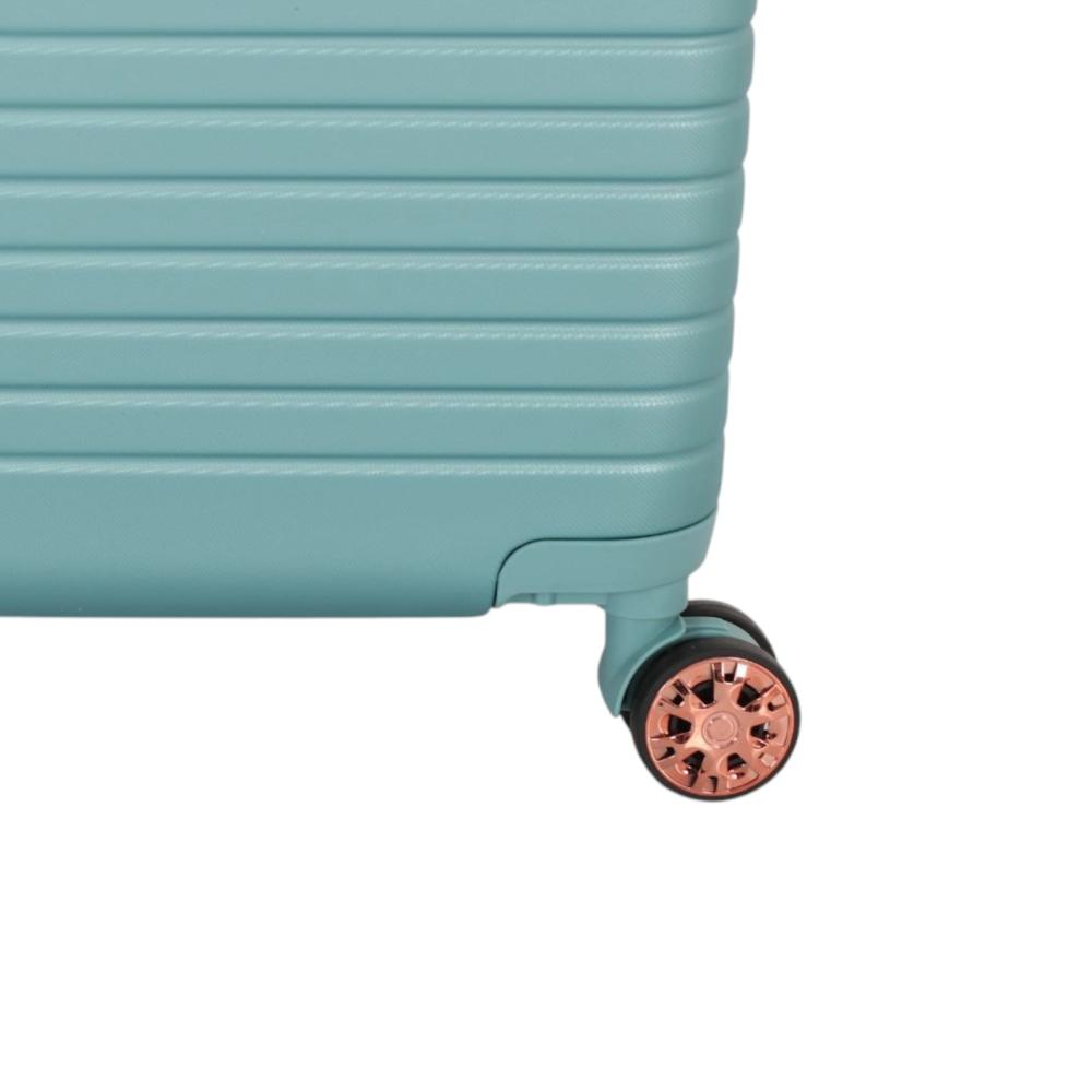 - عجلات مزدوجة بإطارات ملونة: تسهل الحركة وتضفي لمسة جمالية على الحقائب.